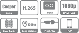 Cooper Series XVR. Designed as a full compatibility product, XVR is able to provide end user the simplicity of analog system, namely lower system cost, simple installation and use of existing cable. And with the adoption of Smart H.265+/H.265, the series improves encoding efficiency, saving on bandwidth/storage costs. It is ideal for a wide range of civil applications such as retail store, home protection and so on.